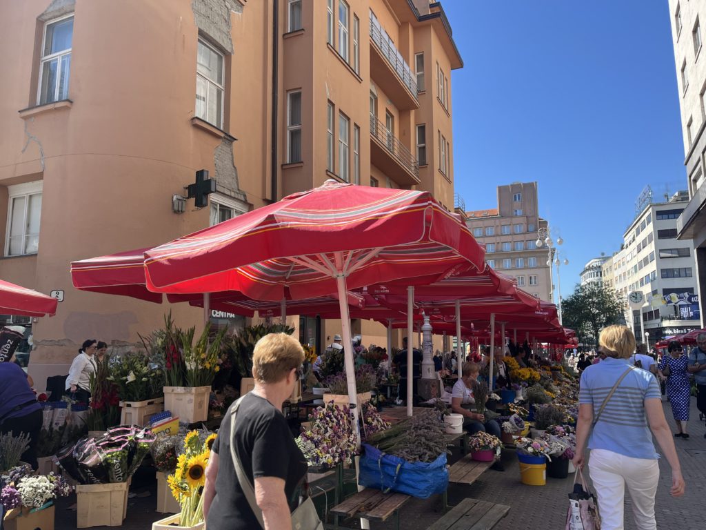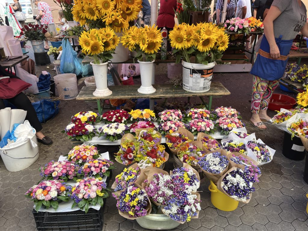 次男は、去年サマースクかで一緒だったフィリピン人の弁護士がちょうどざぐらぶにいるみたいだなら、ちょこっとお茶してくるわ、と一足先に出かけて市場で合流カラフルな赤いパラソルの下に、色鮮やかなお花や、野菜、そしてラベンダーグッズや蜂蜜などなど。地元の人でとても賑わっていました。