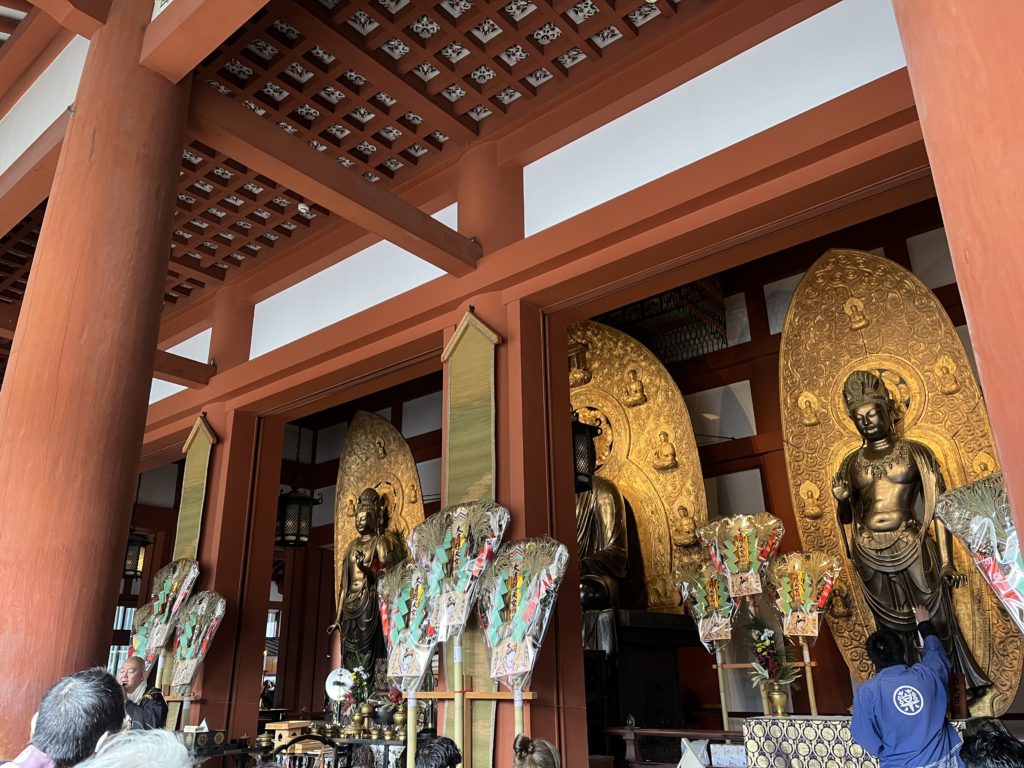 当然ですが金堂の中、寒いです、ドアも開け放ってあるし。御祈祷のお札の数も多くて、何人かのお坊さんが手分けして読み上げてくださってましたが、それでもいつもよりだいぶ時間がかかったようで、結局金堂に入ってから2時間、立ちっぱなしでした。