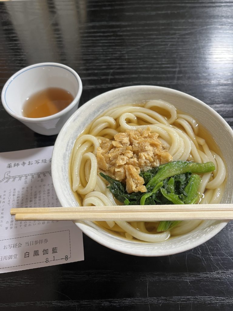 通常拝観料1000円ですが、お写経すると、拝観無料、さらにこの日はおうどんまでいただけて!(卑しい💦薬師寺の周り、食べるところ、ほとんどないので、よりありがたいです)