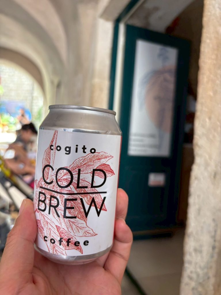 旧市街に降りて、cogito coffeeで冷たいコーヒーで暑さから生き返る。石畳の上にベンチがあり、日陰であれば涼しい〜。そして、そのままランチへ。