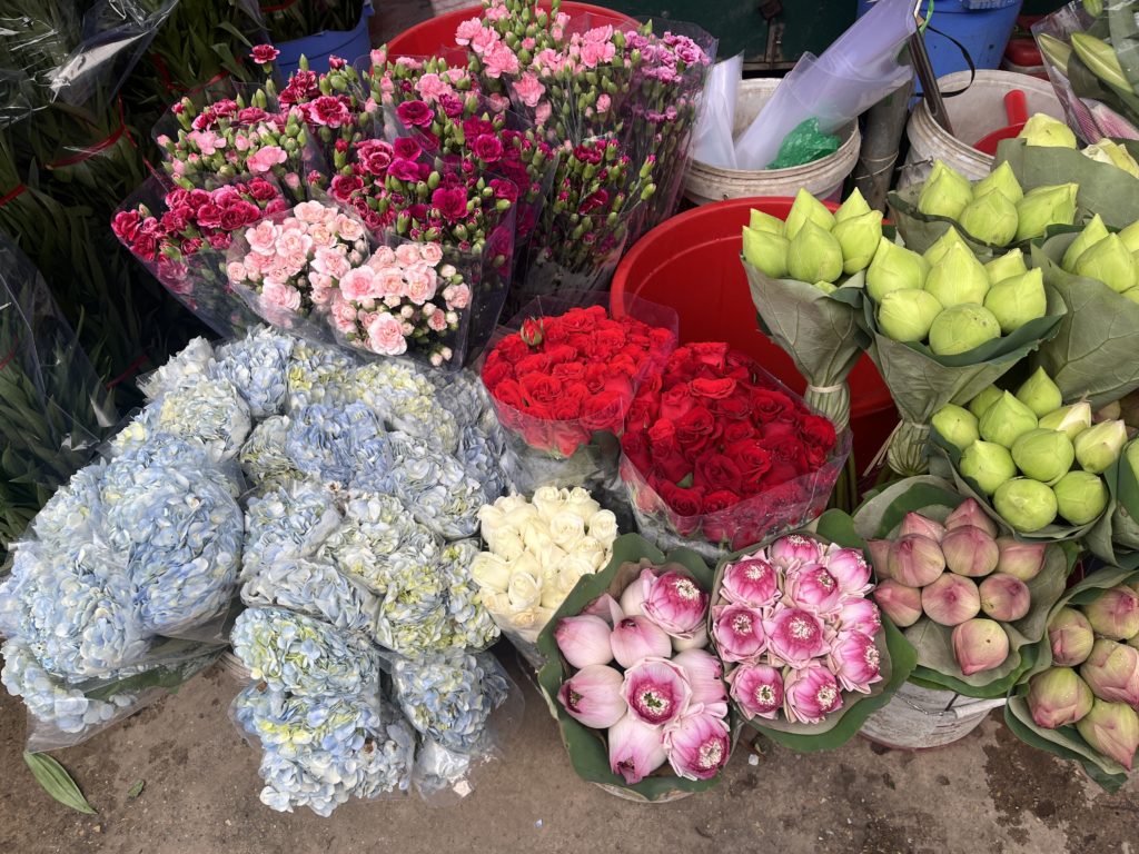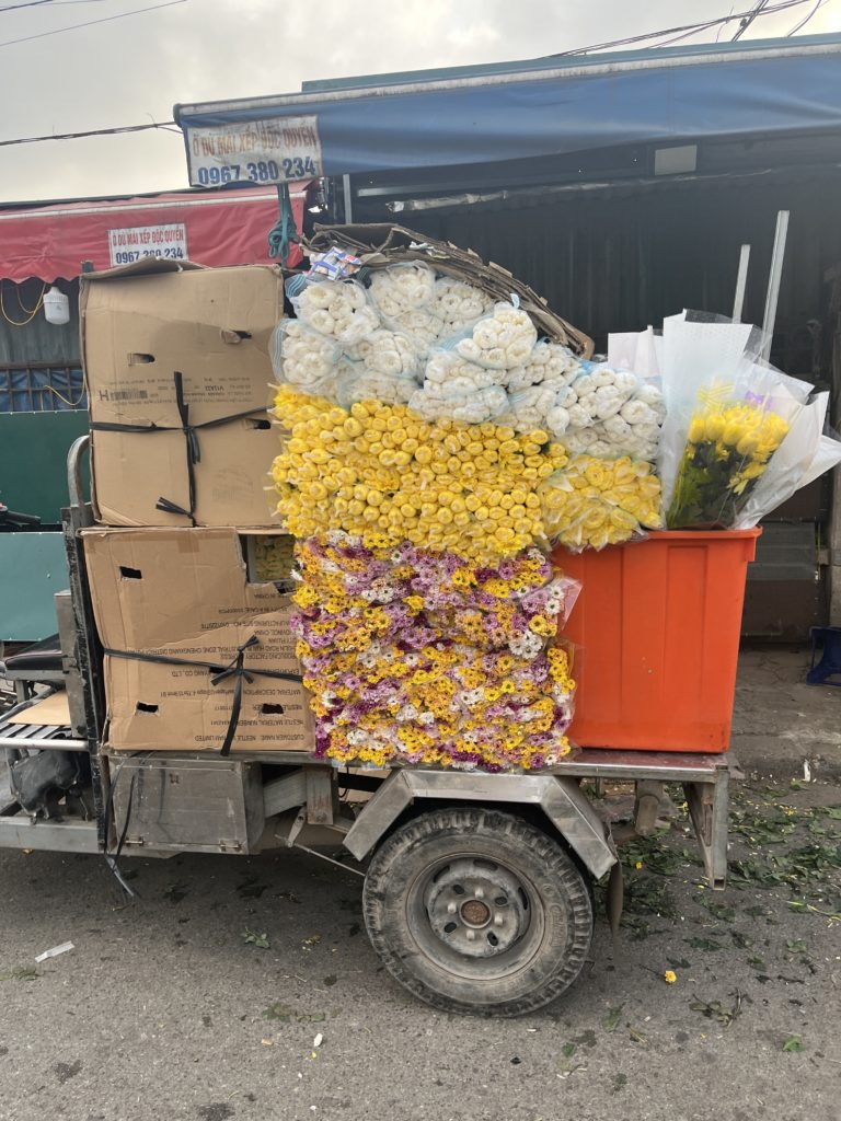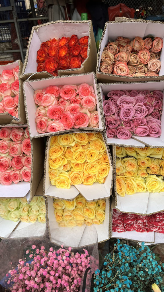 深夜から開くマーケットなので、深夜に来たらあかりのもとでお花もさらに綺麗だったんだろうな、と想像しながらも、足元にいっぱいいろんなものが落ちているので つまづかないよう、後ろからのバイクにぶつからないよう 歩きました。