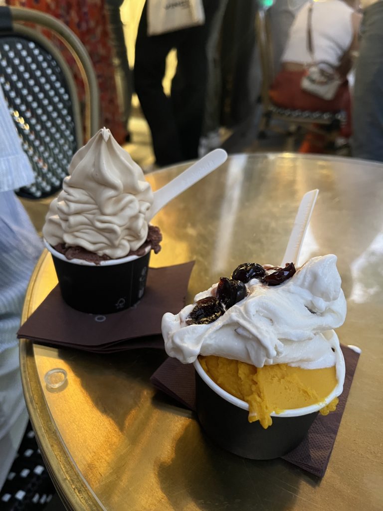 その後、散歩がてら、すっごい美味しいアイスクリーム屋さんある、というので、そちらへ行ってみると、夜10時半を回ろうかというのに列ができてました。老いも若きも、みんな幸せそうにアイスクリーム食べる!