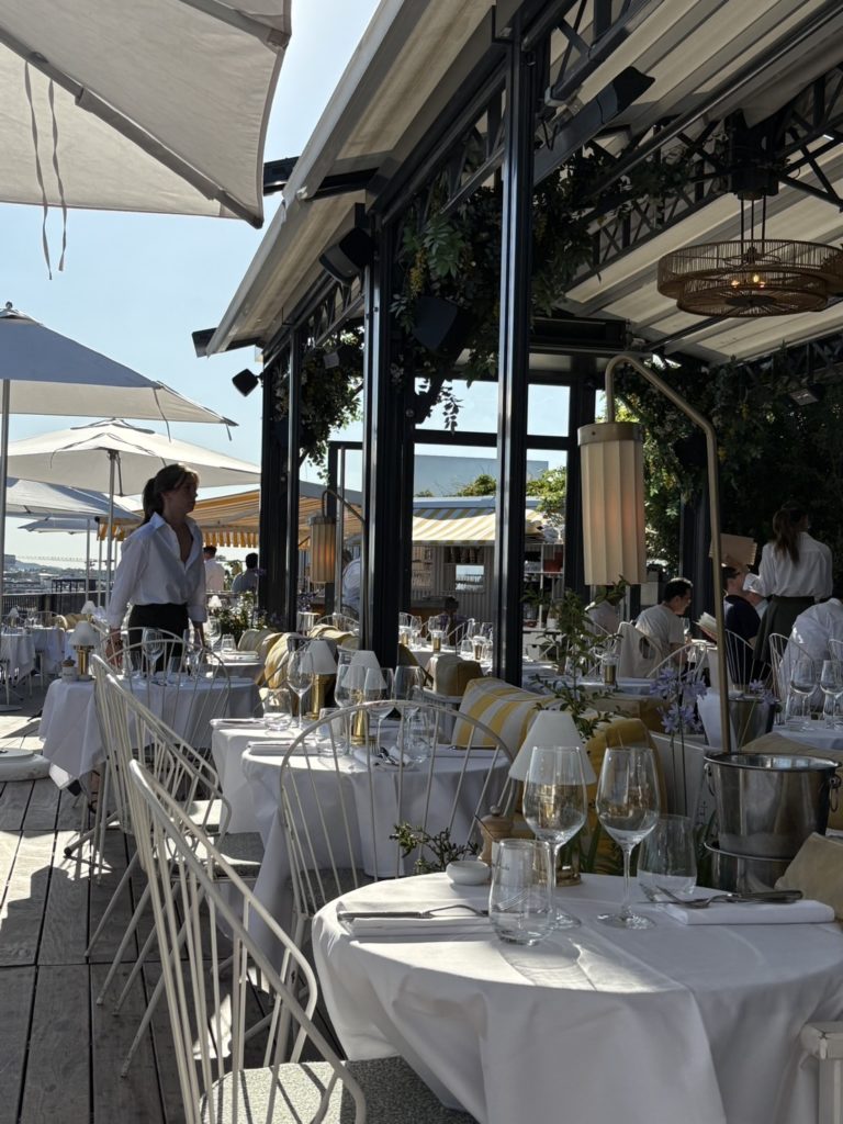 屋外で、パリの絶景をみながら、周りは素敵なパリの人たち、映画か?の世界。そんな夢のような中、美味しいお料理をいただき、さてお会計。