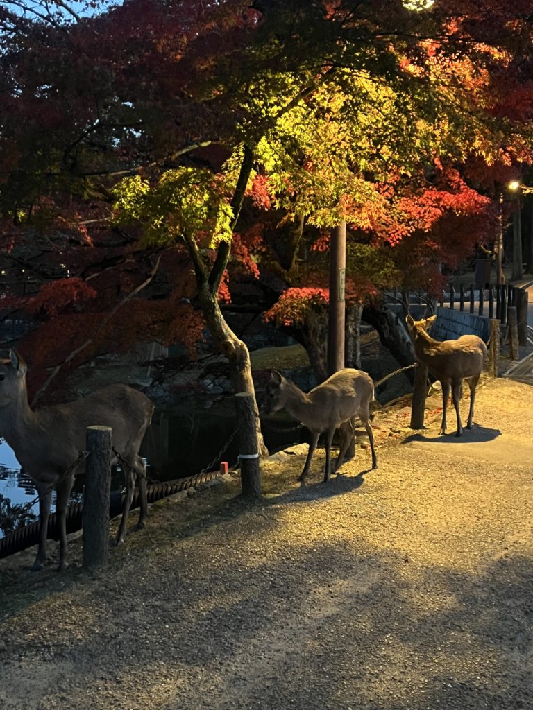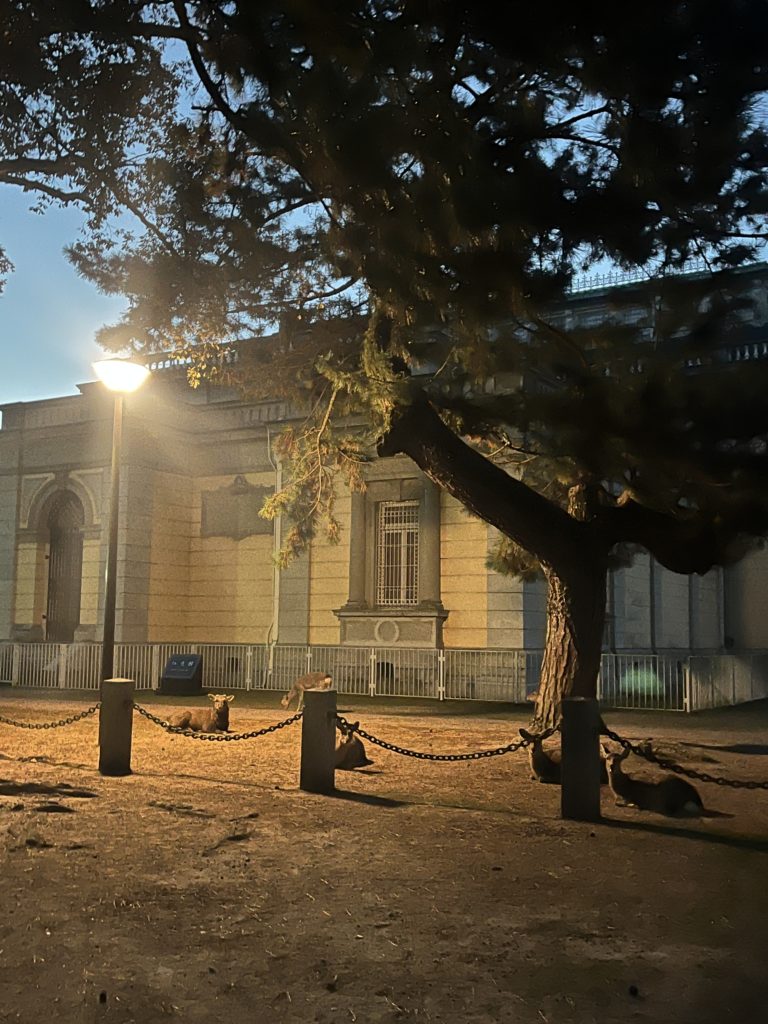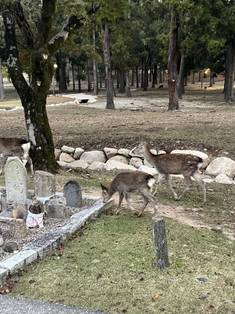 興福寺を抜けて奈良公園。この時間は観光客もいないので鹿たちも落ち着いて気ままに過ごしているように見えます。