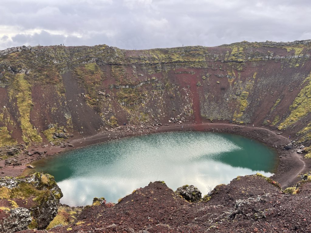 まずは火口湖へ。美しいエメラルドグリーンの湖