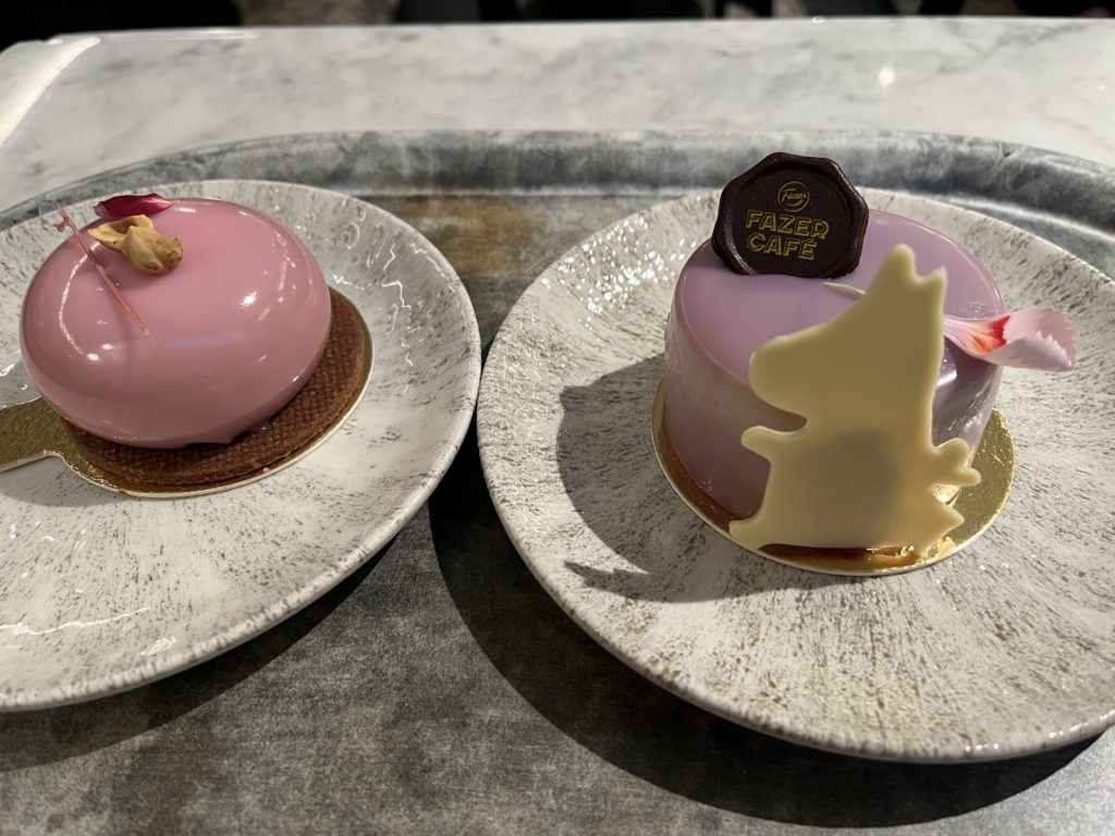 Fazer cafe(1891年創業のフィンランドの老舗チョコレートメーカー)で、ムーミンケーキ食べて、カフェ飲んでほっこり、美味しかった〜、可愛かった〜❤️