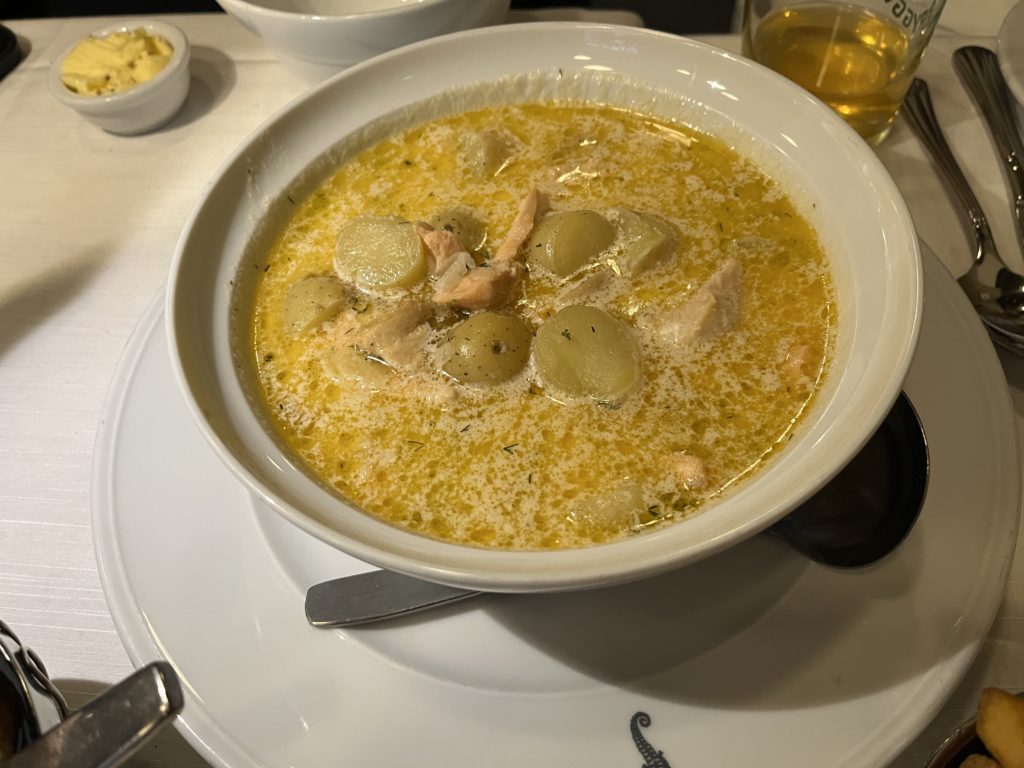 鮭のソテーはメニューから無くなったというのでまたもやサーモンスープ