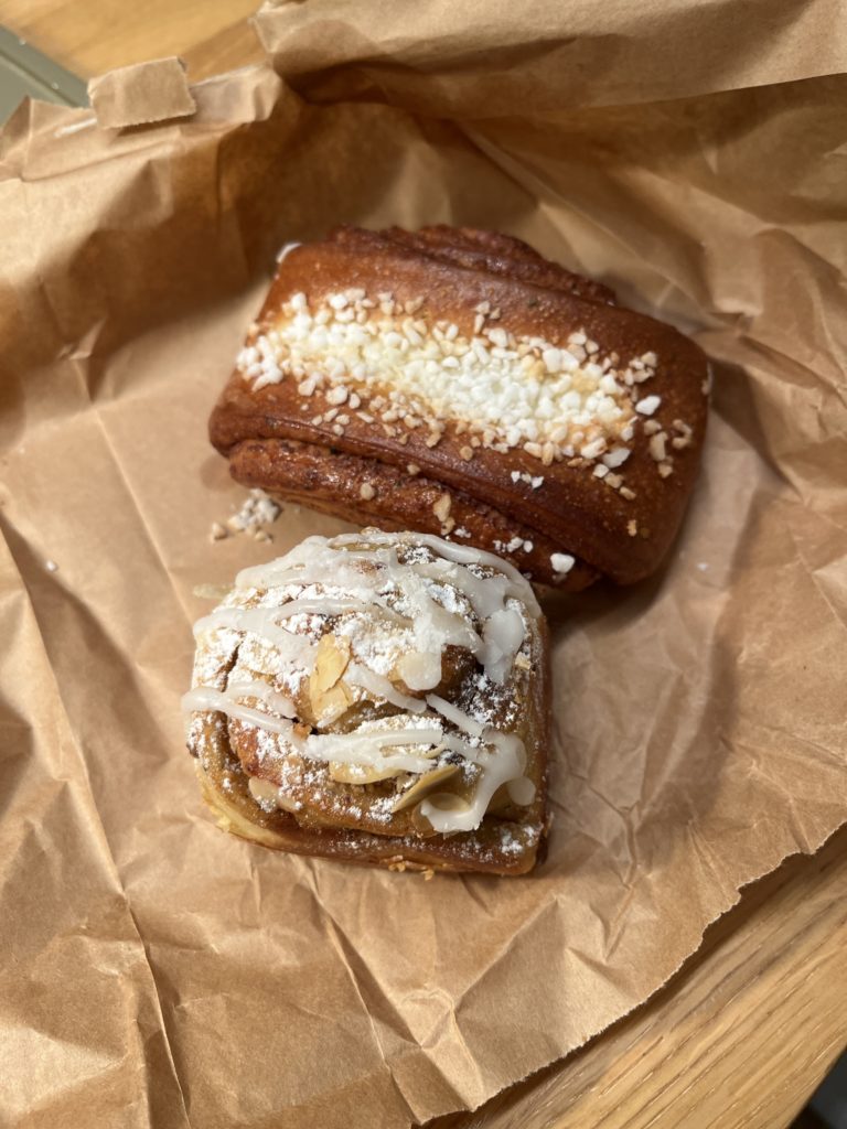 いまだシナモンロール食べてなくて。ここの併設ベーカリーはおすすめ!とガイドに載ってたので、ベーカリーで翌朝の朝食をまずは調達