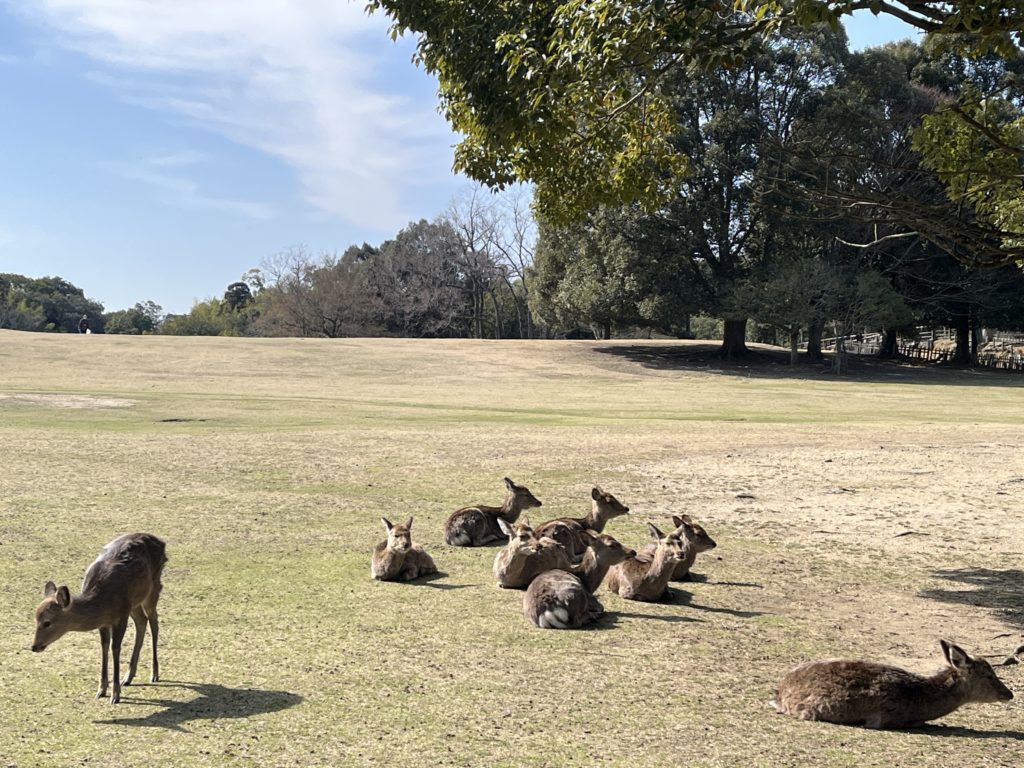 というわけで 梅や桜の花、のんびり日向ぼっこする鹿、そしておたいまつの準備に もう春がすぐそこまできているのを感じながら、気がついたらこの日午前中だけで19000歩歩いてました笑(旅行レベルだろ!笑)