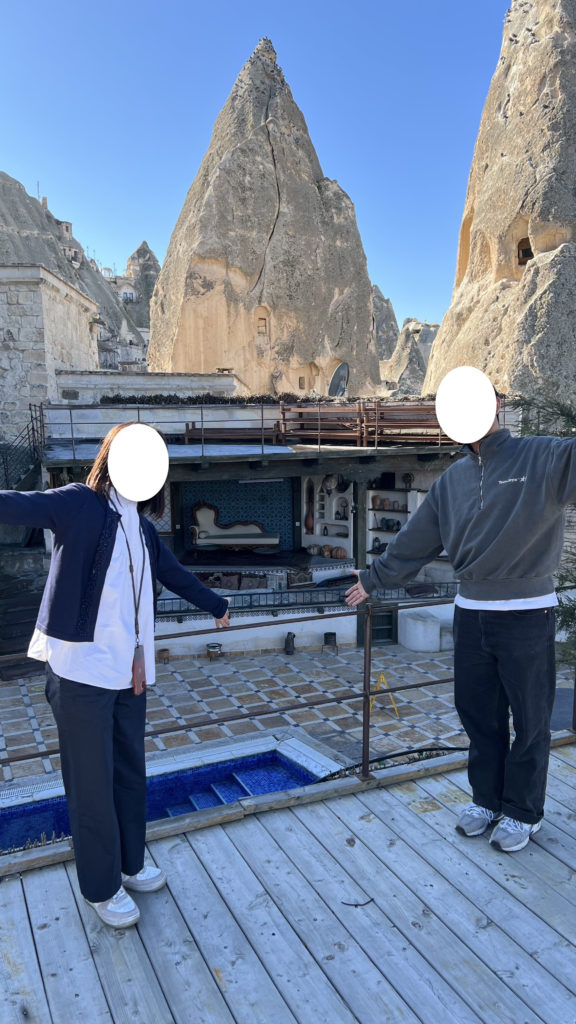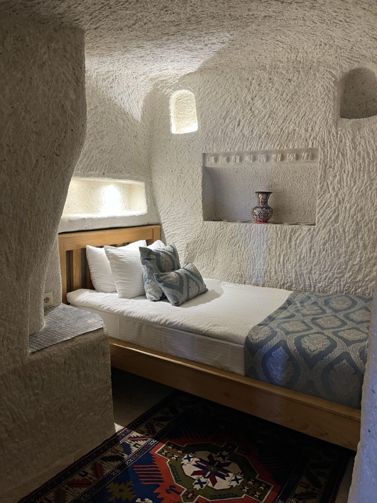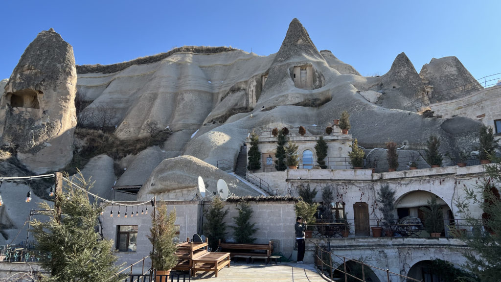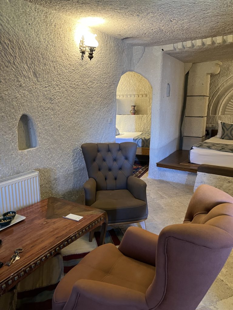 見てください、本当に奇岩を掘ってホテルを作ってるんです。お部屋の中もとてもいい感じ。